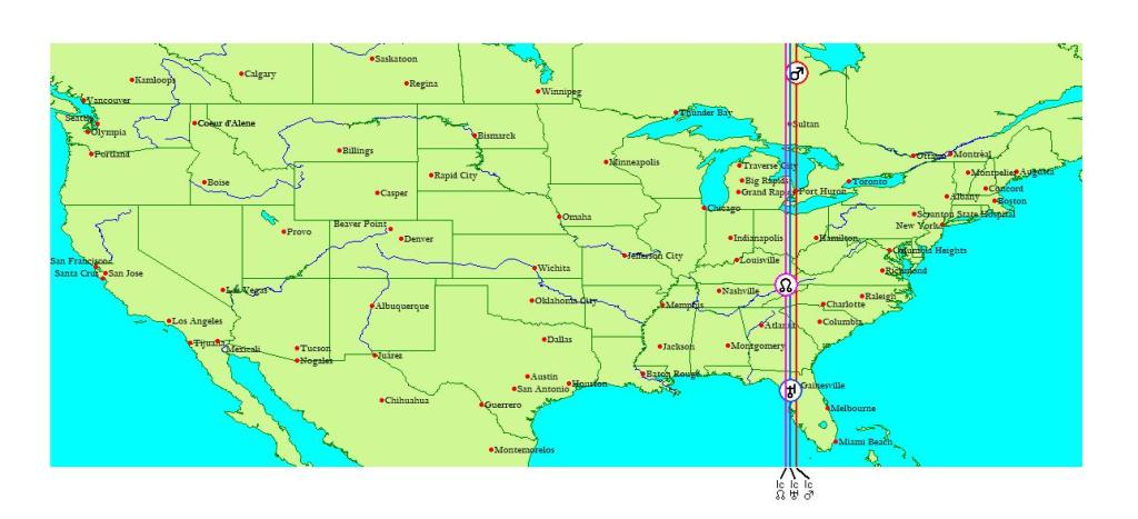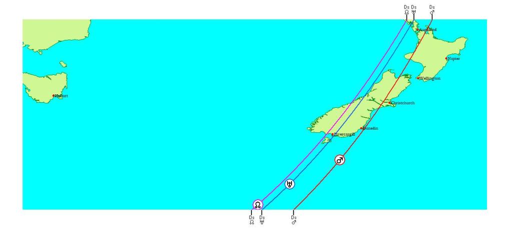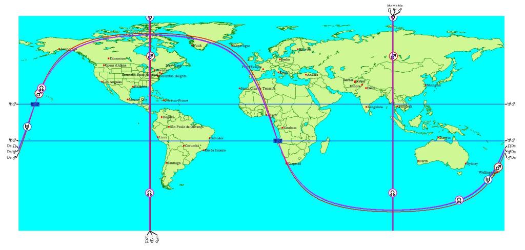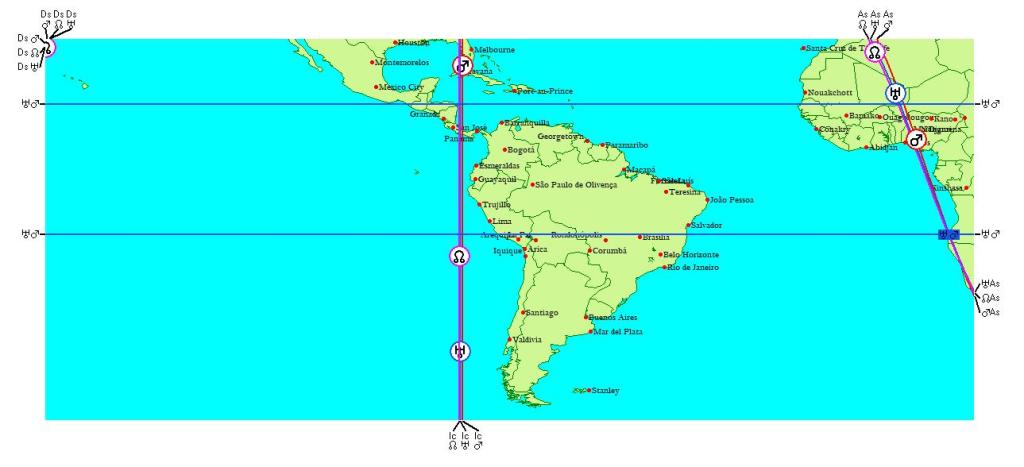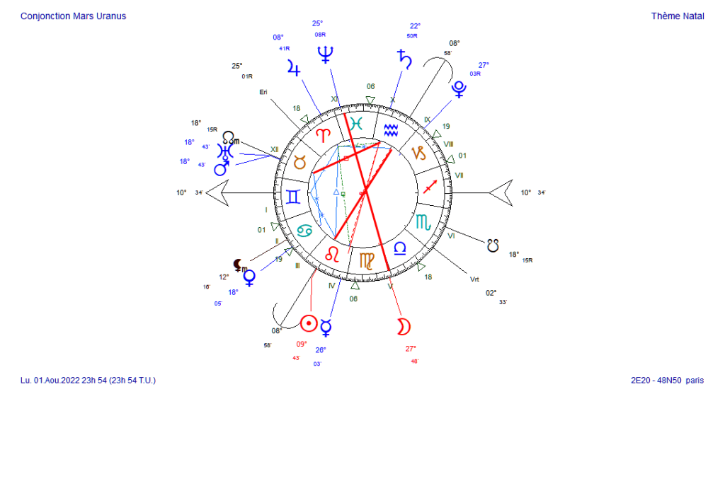 Répartition des influences planétaires de la conjonction mars/uranus/noeud nord en taureau,sous différentes latitudes