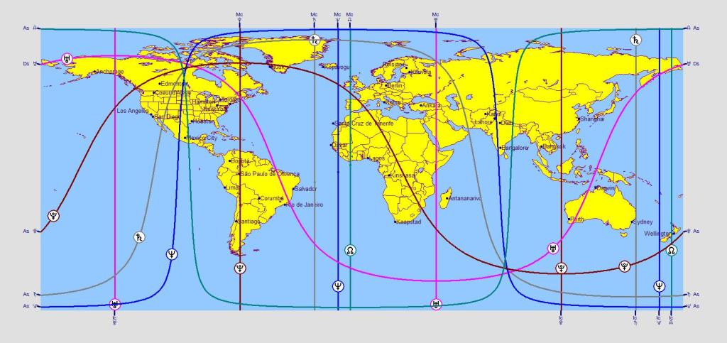 La projection d’un événement céleste sur une carte mondiale permet de localiser des zones impactées par les lignes angulaires.