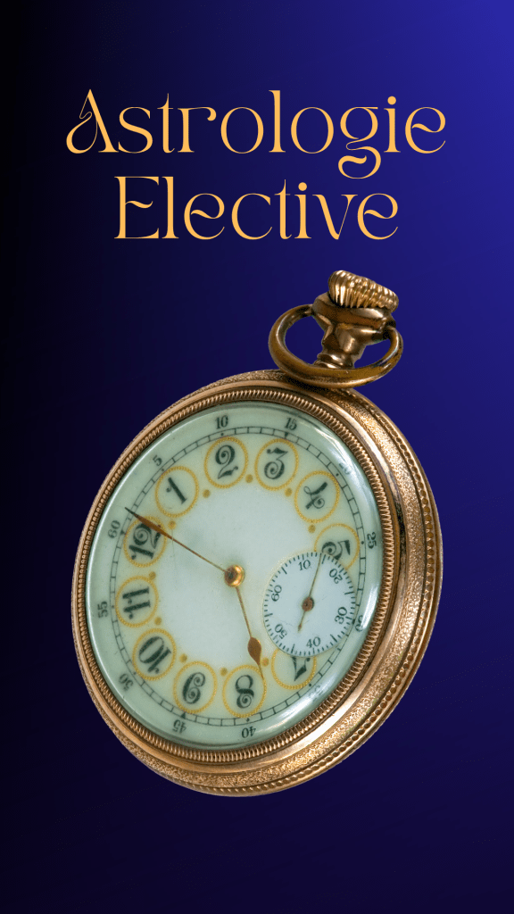 En astrologie, on parle d’astrologie élective pour la branche qui sert à choisir le moment le plus favorable pour commencer quelque chose d’important : mariage, lancement d’entreprise, signature de contrat, opération, déménagement, voyage, etc.