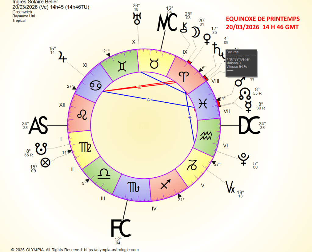 EQUINOXE DE PRINTEMPS 20/03/2026 14 H 46 GMT Hémisphère Nord